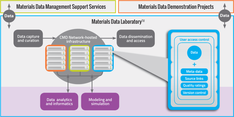 In addition to leading several data demonstration projects – developing standards and protocols – CMD Network also provides materials data management services and support for industry, academia, and government agencies. These efforts, some of which involve proprietary data, are intended to be part of a larger ecosystem – a Material Data Laboratory – that will serve as a test bed for understanding how data sets behave as they move through multiple repositories and processing steps.