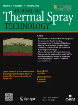 The February issue of Journal of Thermal Spray Technology is free access for you to download and read now through the end of March. This is a special topical issue of the journal on 30 Years of Environmental Barrier Coatings (EBCs), featuring a retrospective article by the Guest Editors, Edward Gildersleeve, GE Aerospace, and Bryan Harder, NASA Glenn Research Center, along with invited articles containing cutting-edge research in EBCs.