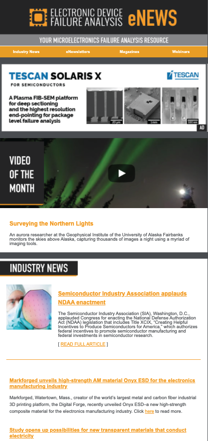 The monthly newsletter from the Electronic Device Failure Analysis Society (EDFAS).